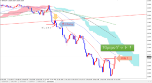 は!っとなってチャート見たら、ダウ理論を否定されかけてる最中で、しかも70pipsも取れてるから、